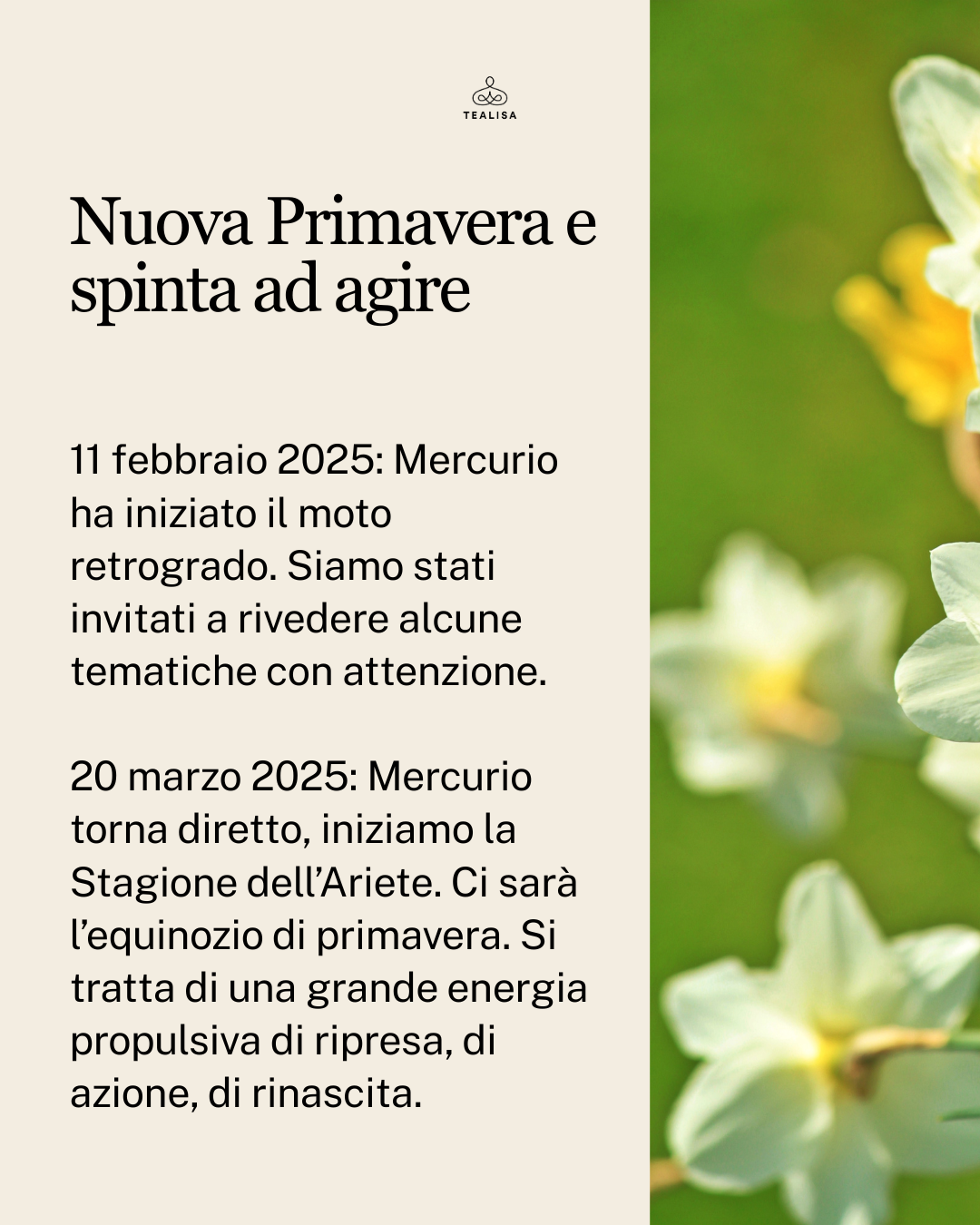 L'inizio della Primavera astrologica porterà con sé una spinta di propulsione e azione necessaria per concretizzare le intuizioni nate durante il silenzio dei Pesci. Sarà allora che la semina interiore troverà il terreno fertile per germogliare.