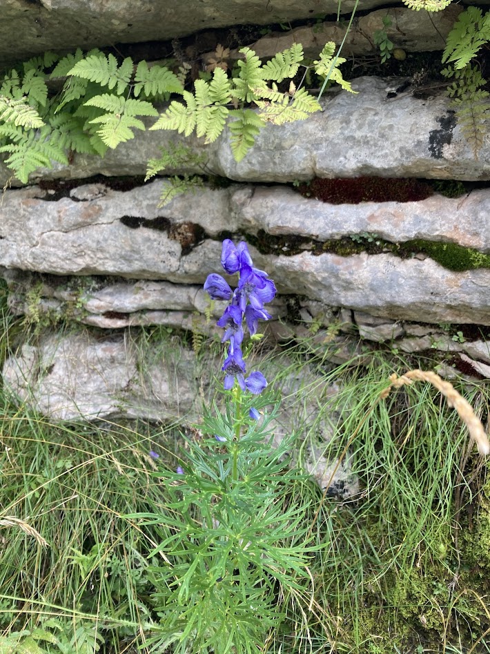 Spostandoci siamo stati attirati, ma messi subito in guardia dal ACONITO (Aconitun Napellus), dei bellissimi colori giallo e viola, ma altamente tossico per noi (addirittura mortale!)