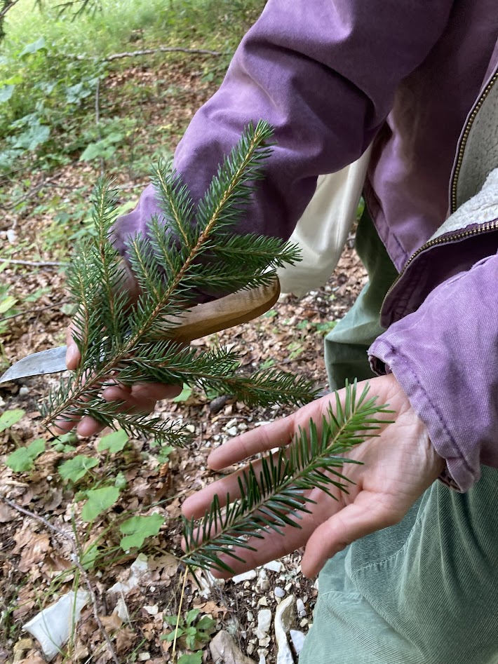 Infine abbiamo raccolto dei rametti sia di che di ABETE ROSSO (Picea Abies, a sinistra) e l'ABETE BIANCO (Abies Alba, a destra) … la nostra guida ci ha spiegato come differenziarli, come si caratterizzino per emanare un'aroma balsamico e come le loro gemme apicali contengano tanta vitamina C.